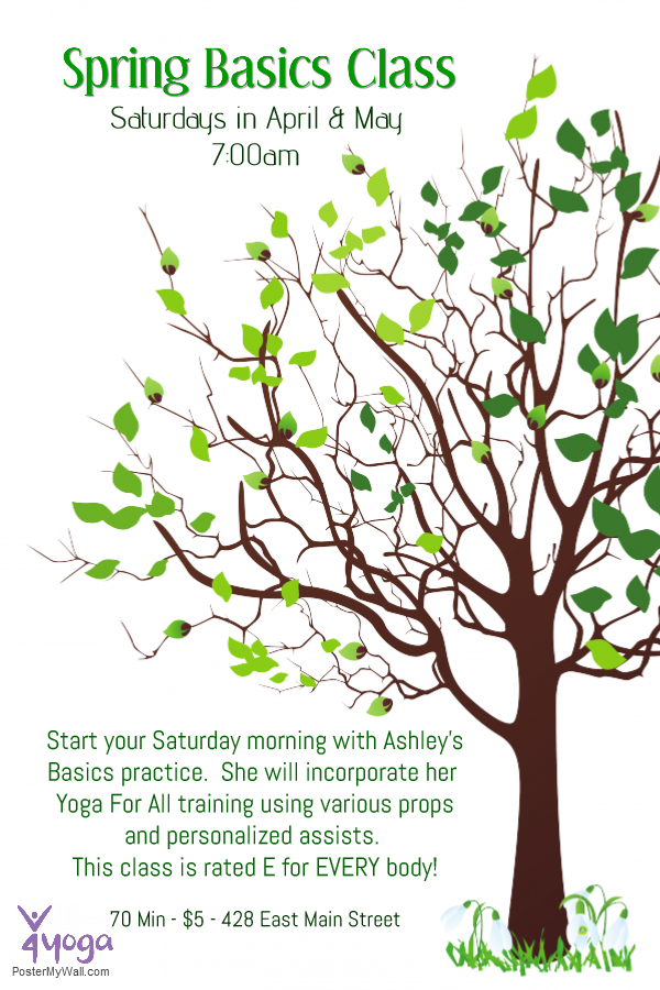 Do you like to get your Saturdays off to an earlier start? Then Ashley has the perfect yoga class for you! Beginning on April 7, she will offer a 7 a.m. Basics-level class each Saturday!