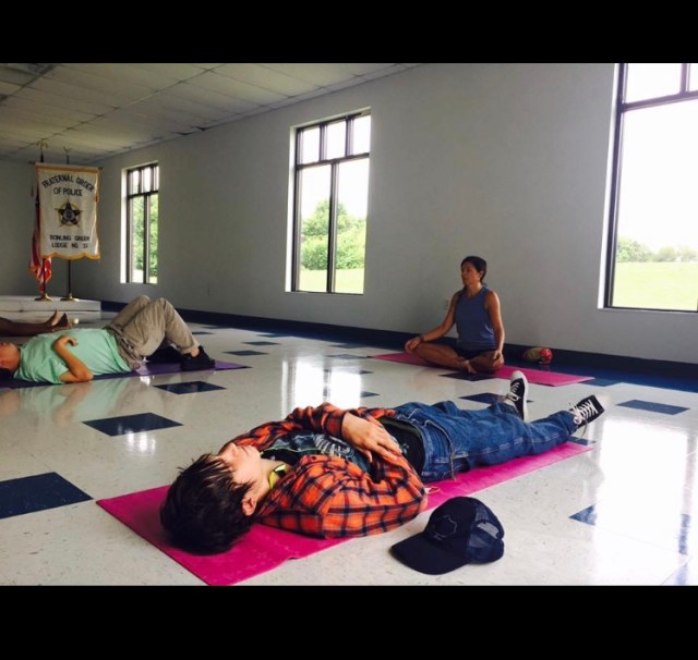 this isn’t a population that typically likes change. When we first started…no one had ever done yoga, and it wasn’t easy to convince them to give it a try. For several weeks I would show up and they might groan or just flat-out tell me “no” [and that] they didn’t want to do yoga. I would always persistently push them to give it a try. Once we would begin, the group would usually lose their focus. But we kept on and on until finally we turned the corner and they came to love and look forward to their yoga Mondays.