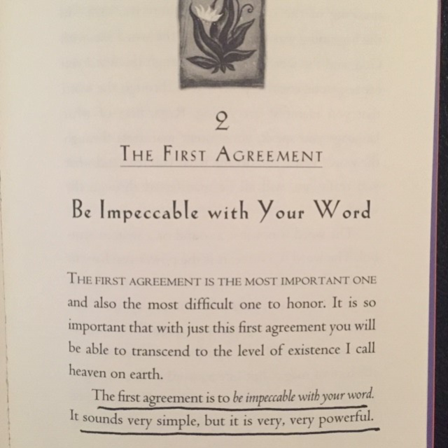 This seemingly uncomplicated book called The Four Agreements by Don Miguel Ruiz addresses some of life’s most difficult challenges and offers guidelines to a life of freedom and happiness. The first agreement teaches us the power of our words. We can create, ease suffering, and communicate compassion and love. Or we can destroy, cause suffering, and reject with indifference.
