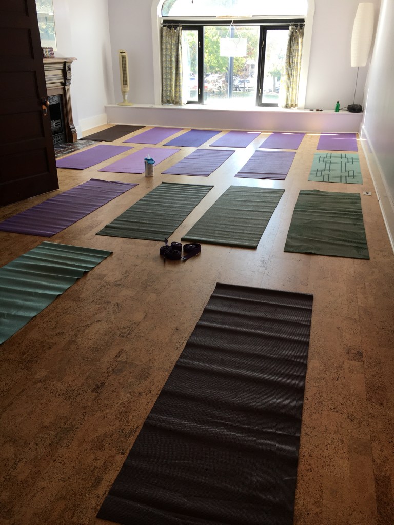 [Full disclosure: since Aparigraha (non-hoarding or non-attachment) is still a work in progress for Angie, she may have stashed one of the original purple mats in her campus office for workplace use.]