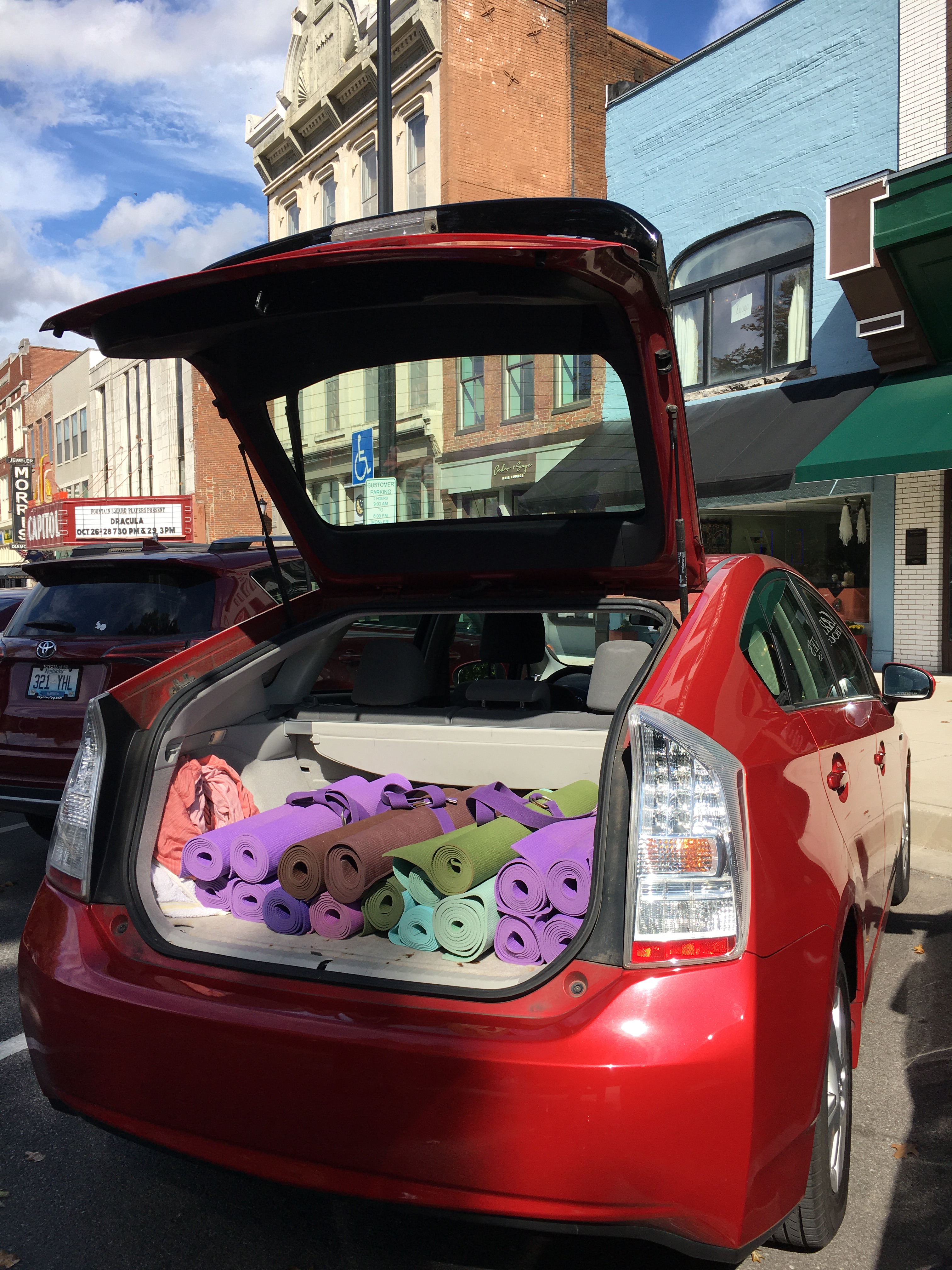 A generous donation of new mats from longtime community member Susan James has given us the privilege of donating our existing mats to a new organization! Whitney Jenkins, a social worker and trainee in the yoga teacher program at Steadfast & True yoga studio in Nashville, is working to launch a nonprofit organization that focuses on yoga and mental health. Whitney will be taking mats and props to various locations to reach the people she is serving, and we are grateful to have been able to donate our mats to her program.