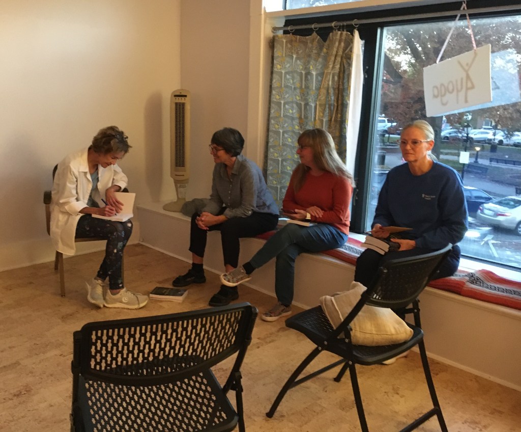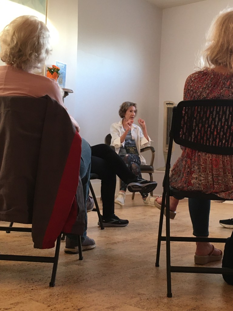 On Wed., Nov. 8, we were honored to host a book launch for the publication of A Long Way Home: A Soldier’s Story, the first novel written by our teacher Frances Strickler! (We say “first novel” because we have learned that she is already hard at work on her next one…which makes us both admire and envy her discipline.)