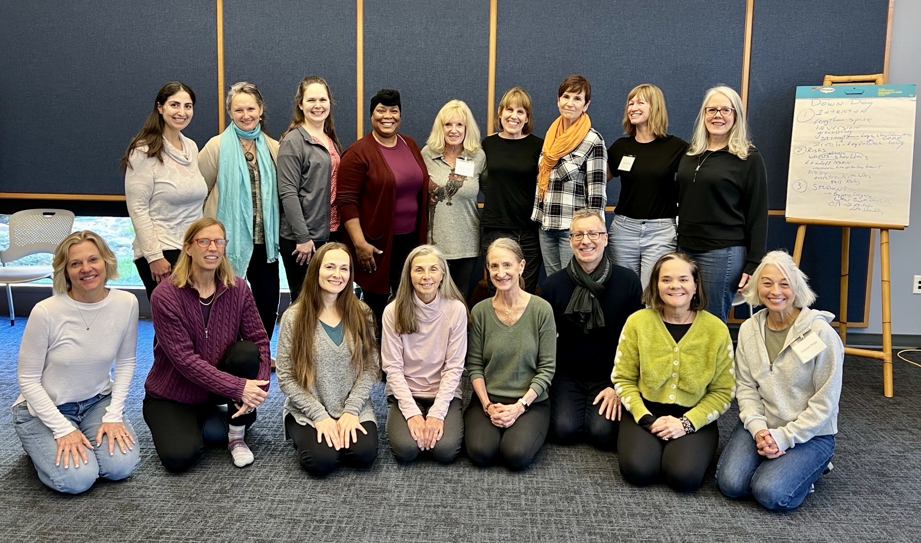 In late November and early December 2023, Angie Jones completed a specialized yoga teacher training at Duke Integrative Medicine in Durham, North Carolina, the Integrative Yoga for Seniors Professional Training. She spent this 8-day workshop with 14 fellow yoga teachers from across the U.S. and Canada studying with Kimberly Carson and Carol Krucoff, founders of the Yoga for Seniors program. (Kimberly Carson also co-taught the Mindful Yoga for Cancer training that Angie completed at Duke in 2019.) Angie is excited to become the tenth teacher in Kentucky to have completed the Integrative Yoga for Seniors program.