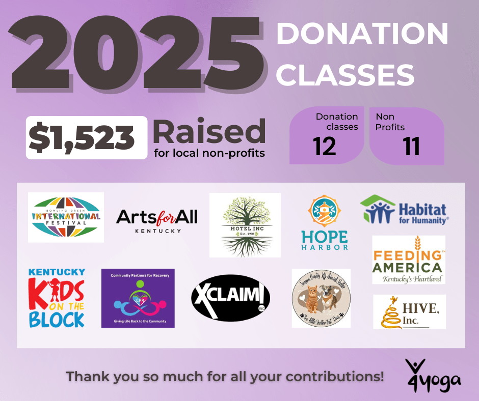 In 2025, our teachers continued to offer monthly donation classes* with all proceeds going to a local non-profit of their choosing. In total, $1,523 was raised. Thank you for all your contributions!