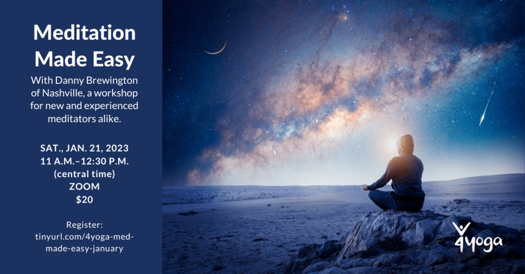We welcome meditators at all stages to join us for our next Meditation Made Easy Workshop. Our workshop leader is Danny Brewington, who brings decades of experiences as a meditator, yogi, and teacher of meditation and yoga to this session.